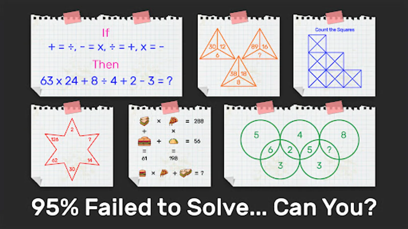 Our math apps teach tricky maths puzzles very easily. If you do regular maths practise then it will be very easy to learn maths. Tricky riddle games of our study games can be solved without a calculator If a player develops brainpower to solve math logic puzzles of our app. If you solve our math logic problems, then you can able to solve the hard questions of the tricky test and mind games.