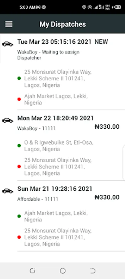 DamWaka offers a virtual environment that proposes to bring the User closer to a network of autonomous providers of transportation of products. Logistics services are carried out exclusively by Autonomous Dispatchers affiliated to the DamWaka platform, triggered and located through the technologies and tools made available by DamWaka. Thus, the services provided by DamWaka to its Users can be summarized as that of providing the Platform for delivering of legal items (any goods or product), management of payments to be made by Users to Autonomous Dispatchers.