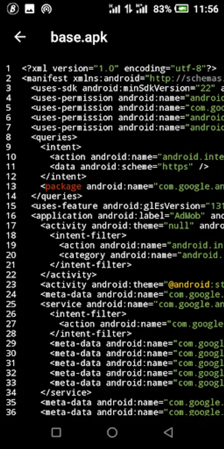 View manifest of any apps, search any content of manifest, save manifest to Sdcard in text .