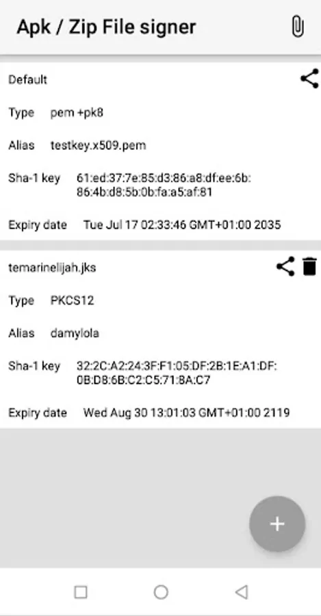 - Supports importing existing keystore file to app (JKS,BKS,PKCS12)