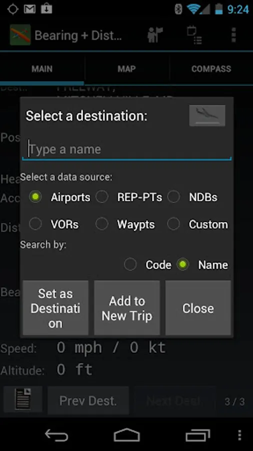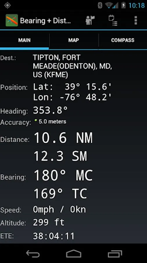 Enter a destination or waypoint and get the Bearing (true + magnetic) and Distance using your GPS navigation coordinates. Includes aviation compass w/ADF, robust trip system, map view w/cross track error calculation and offline map support, "Nearest Destinations" feature, Custom destinations (add your own!), "track recording" to KML files, fuel calculator & much more!