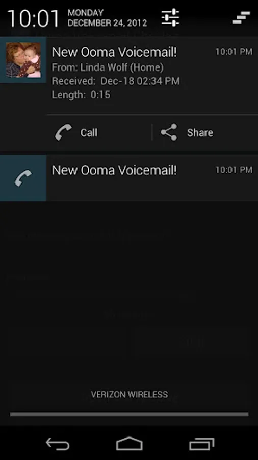- Android 4.1 (Jelly Bean) users get expanded notifications: return the call or share/email VM from the notice.