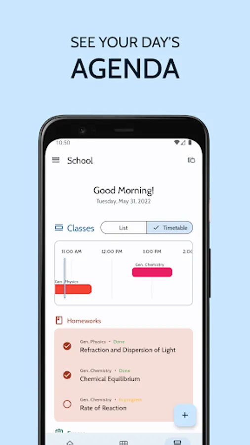 Thousands of students use School every single day. Bring your homework, exams, and tasks in one place to help you stay organized. Its simple, minimalist, and efficient UX will help you do more, and focus better on the important things.