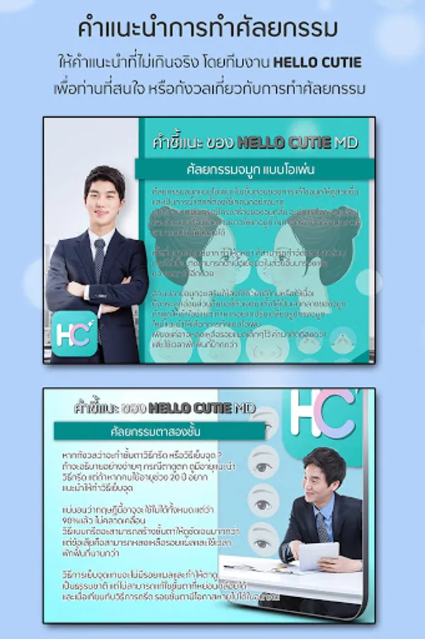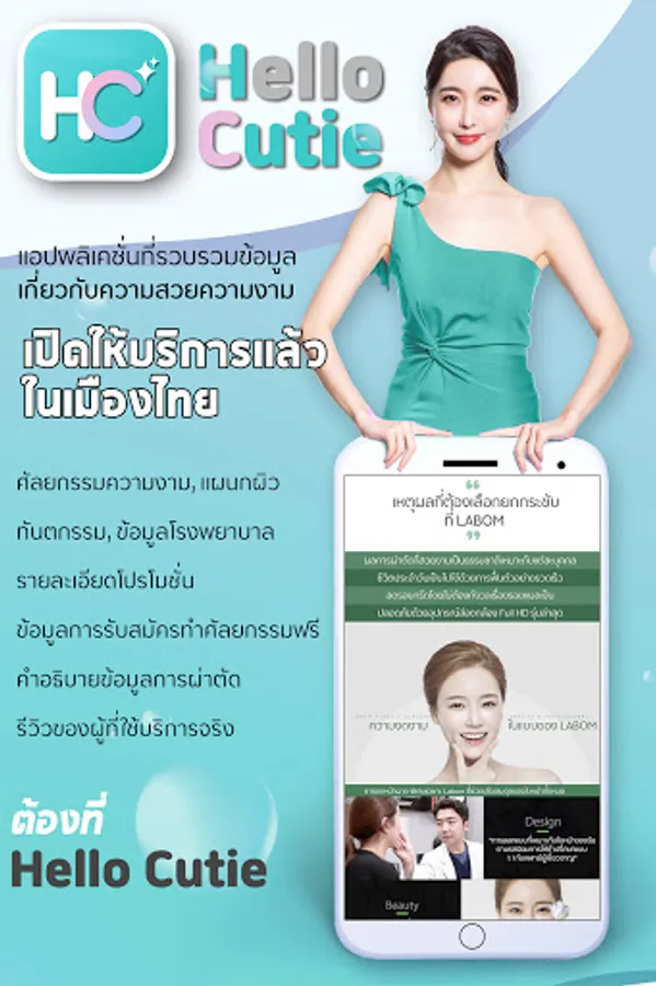 Hello Cutie คือช่องทางที่จะค้นหาข้อมูลและโปรโมชั่นพิเศษเกี่ยวกับศัลยกรรมความงาม ทั้งในคลินินิก,