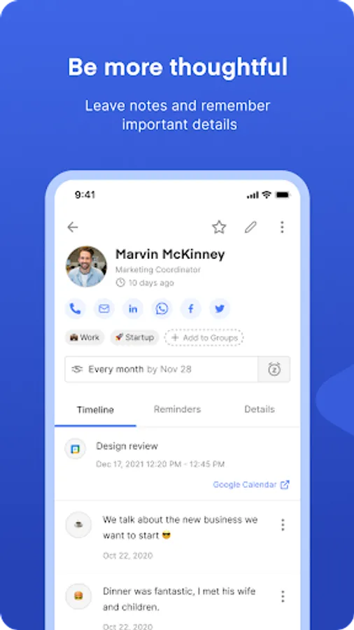 - Configure Dex to send regular reminders: maintain relationships even when life gets busy.
