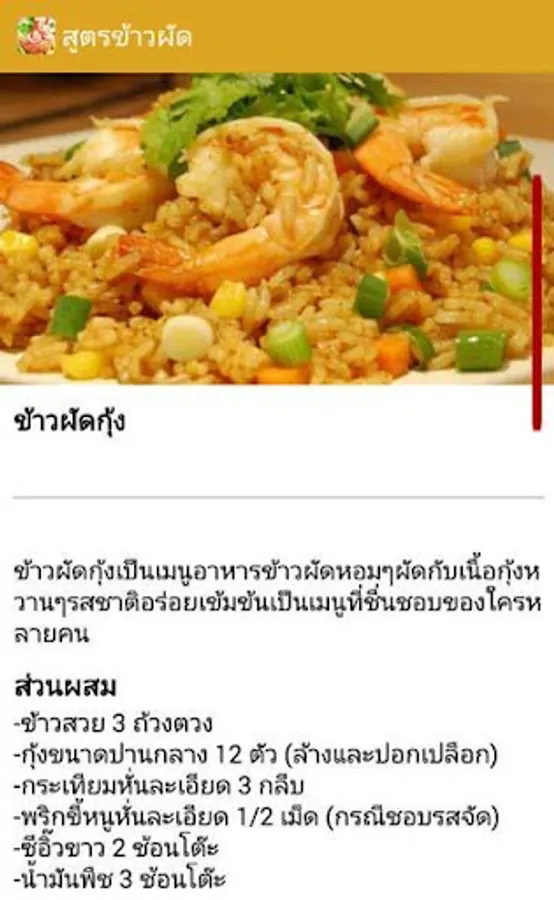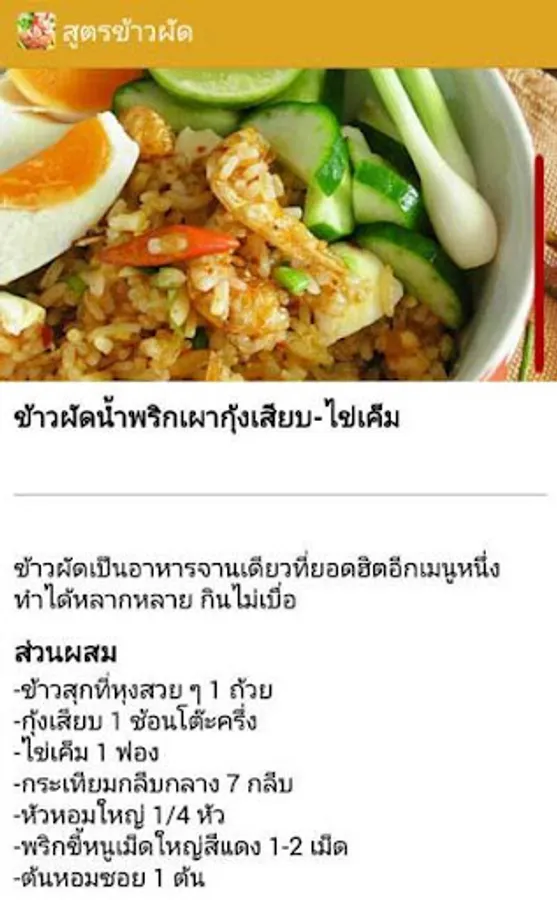 App offers recipes, fried rice, fried rice, tasty menu has gathered a wide range. The ingredients and how to do it carefully. You can follow easily and quickly. The formula consists of fried rice.