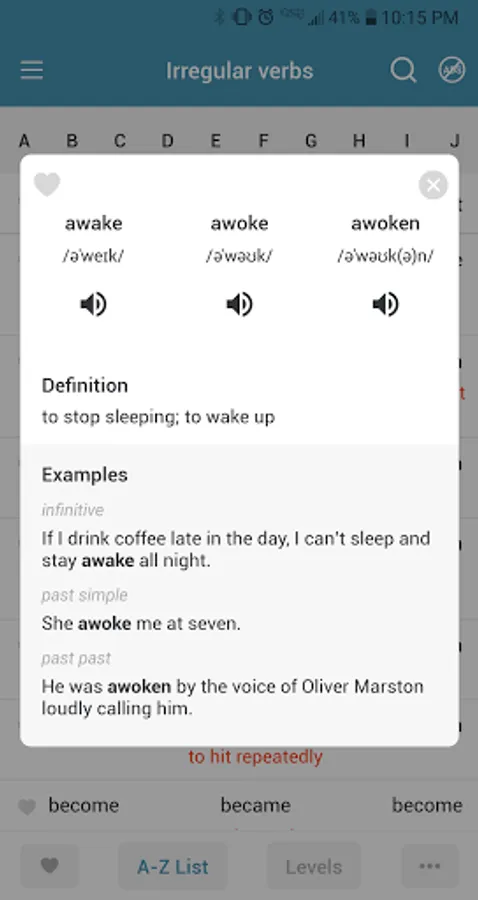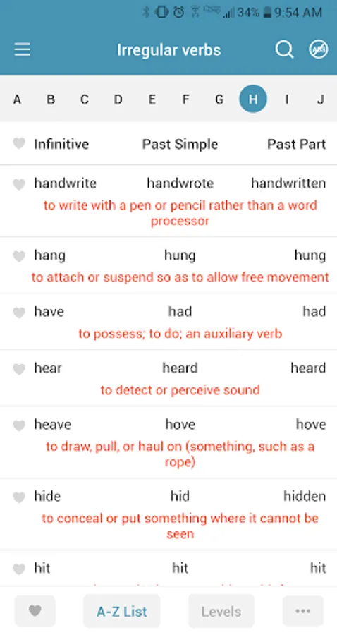 - Fast and accurate search, sort and scroll through the list of irregular verbs