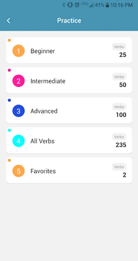 The application "Irregular verbs" providers a list of 236 irregular verbs of the English language.