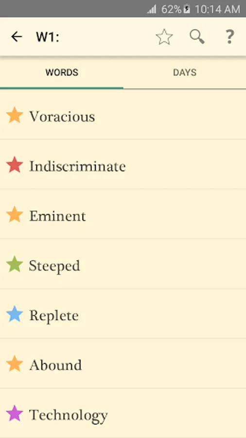 ● In this application all the words are divided into 46 weeks, each week consists of 4 days and each day having 5 new words and an idiom. Those five new words are presented to you in a short story.
