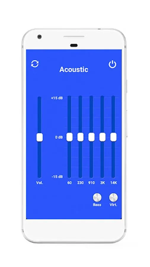 You won’t have any difficulty navigating our app because it only consists of one screen! Everything you need is there: Virtualizer, Bassboost, Volume Adjuster, and 5 Bands Equalizer.