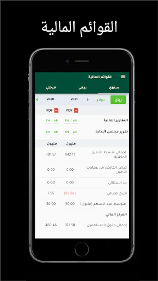 Malath IR app offers you both languages (Arabic/ English) & easy access to data.