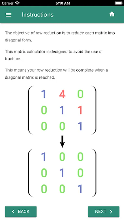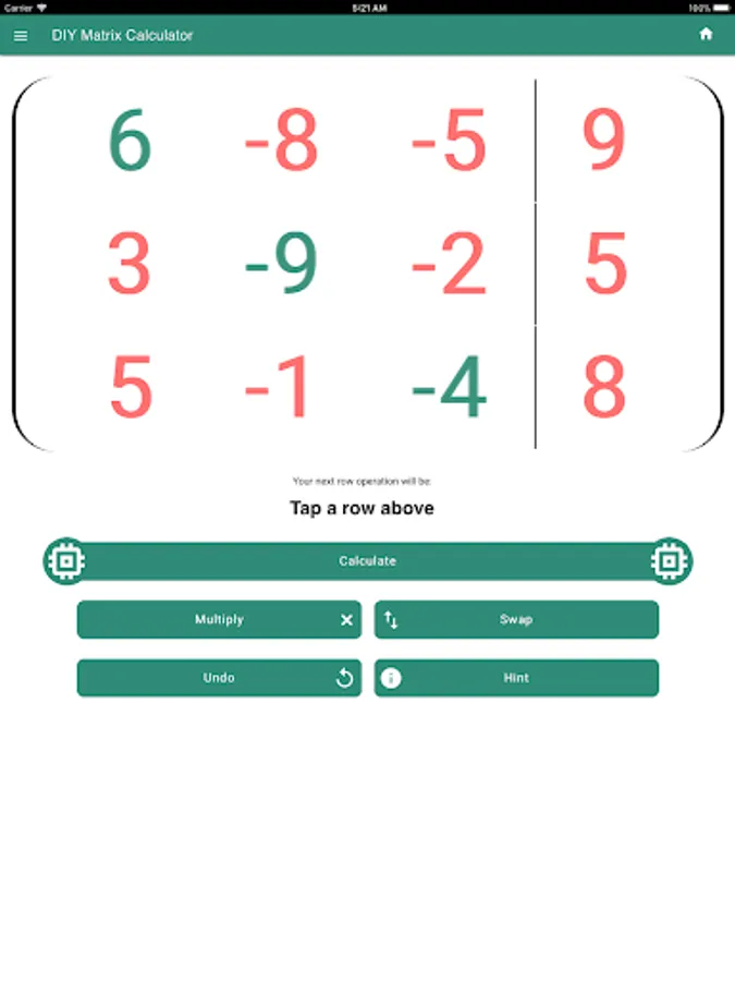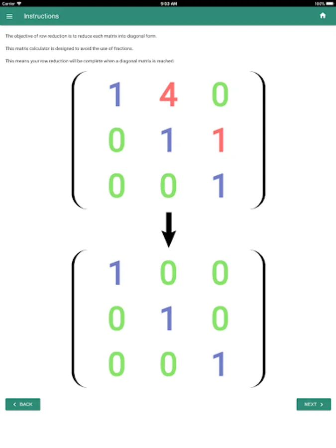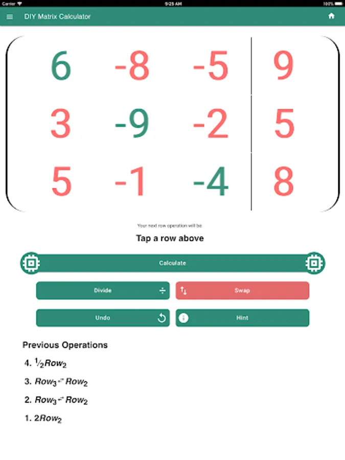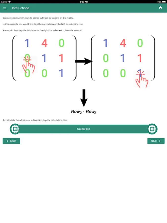 This is an educational alternative to the standard matrix calculators, which do all of the work for you and teach you nothing.