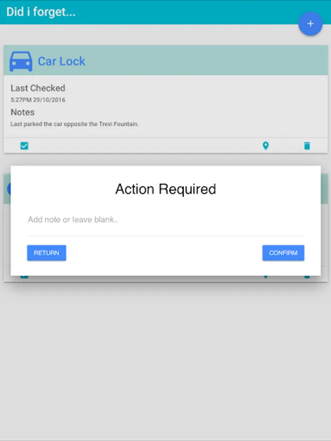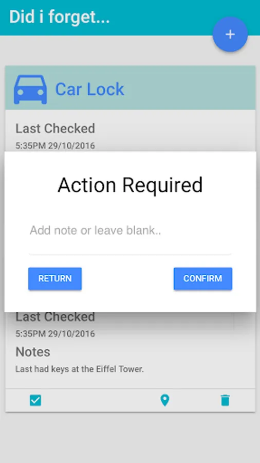 At any time you can enter the app and update the items status, it's GPS coordinates and add in a personal note.