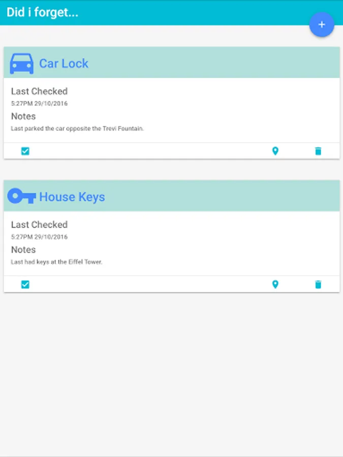 This application allows you to log when / where you last saw an item or performed a task.