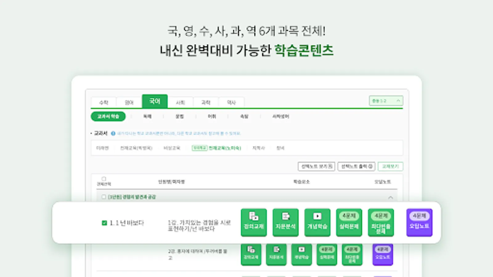 Select only the necessary parts with learning contents for 6 major subjects tailored to the curriculum for each grade level and proceed with learning.
