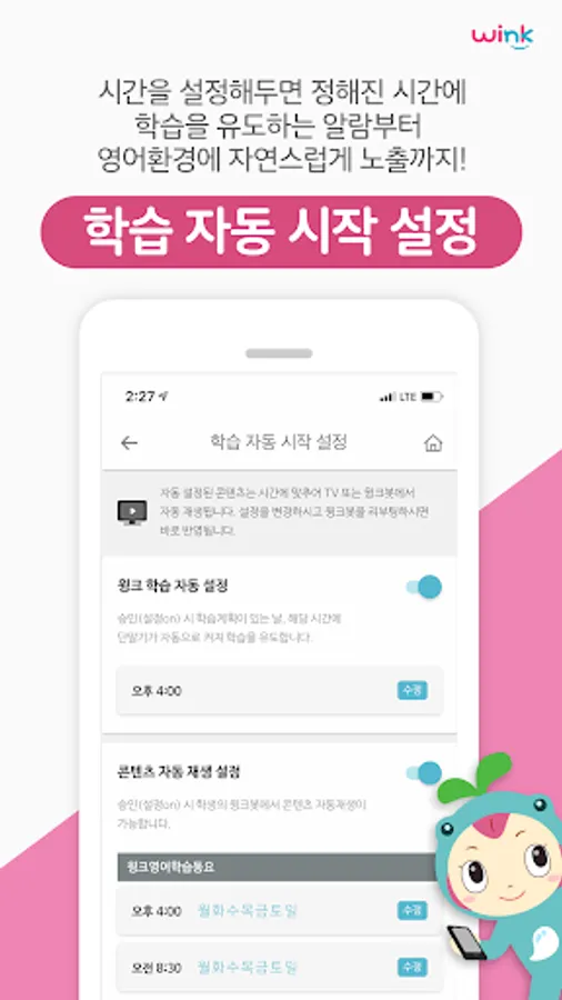 In addition to this, there are many essential features for our child, so please install and utilize the Wink Parent App.