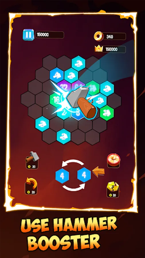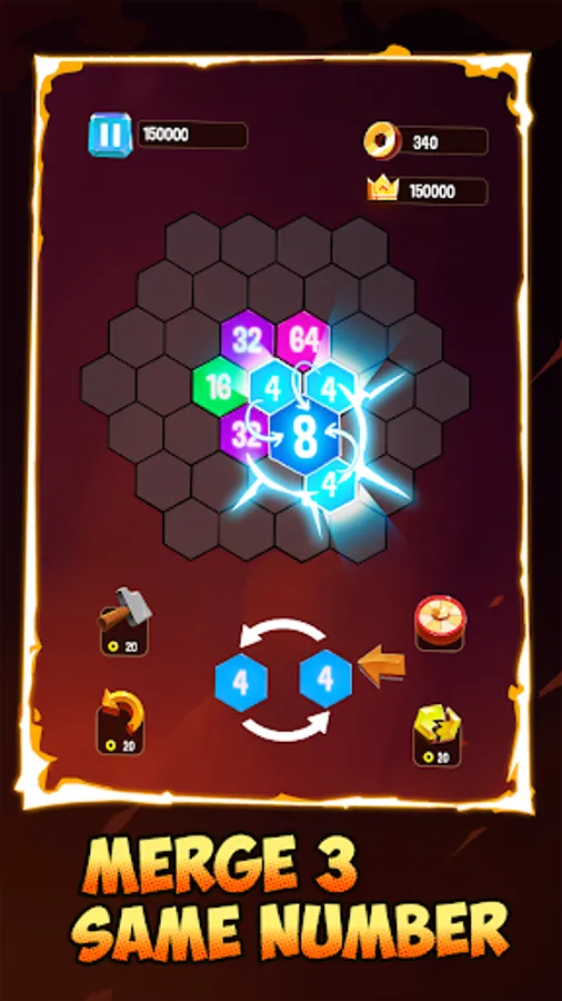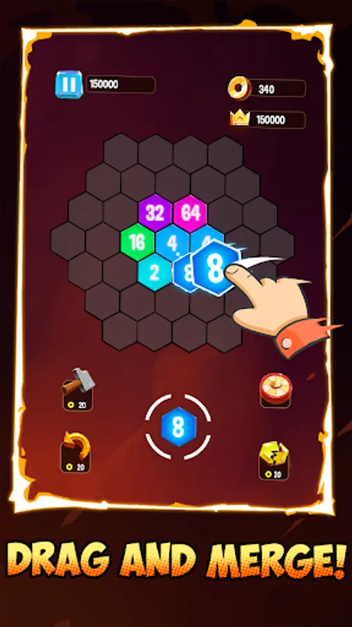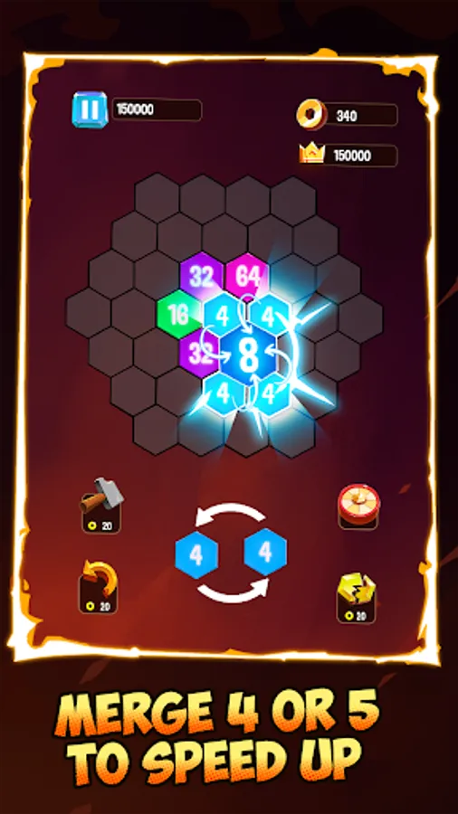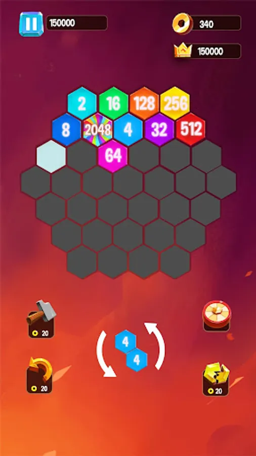 This is the hexagonal version of 2048. It is a fun, addictive and simple puzzle game. Get to the 2048 tile, and reach a high score!