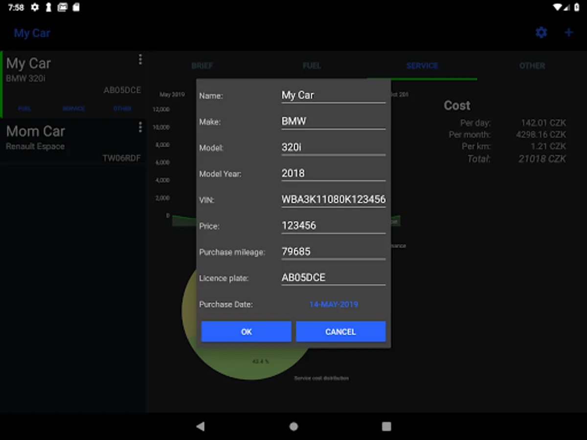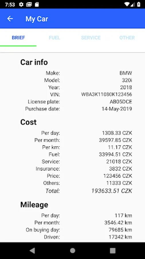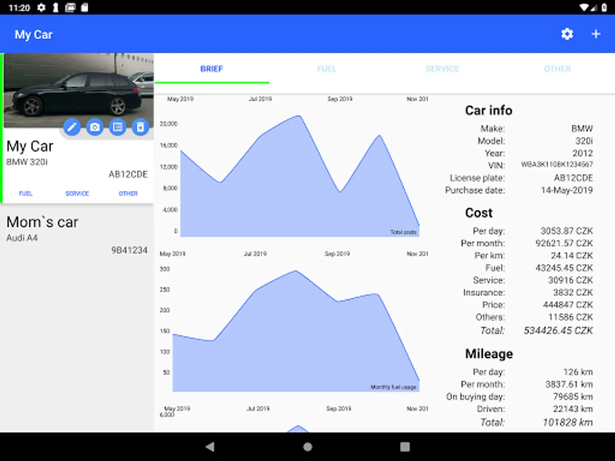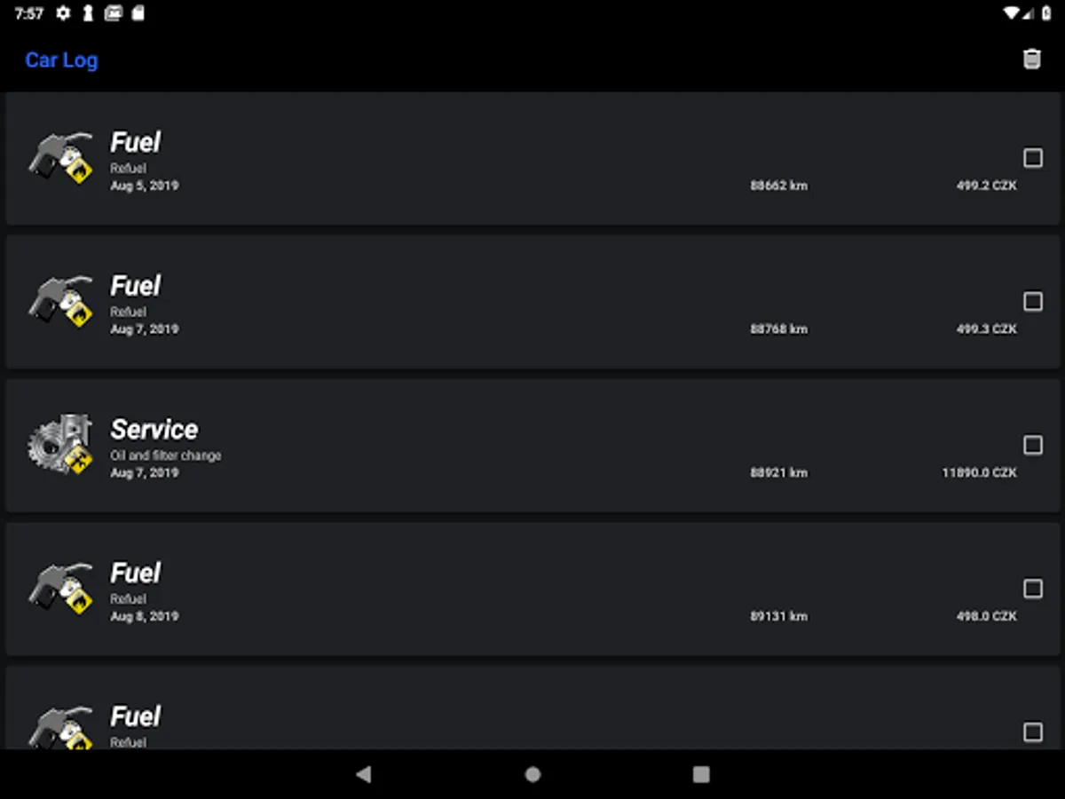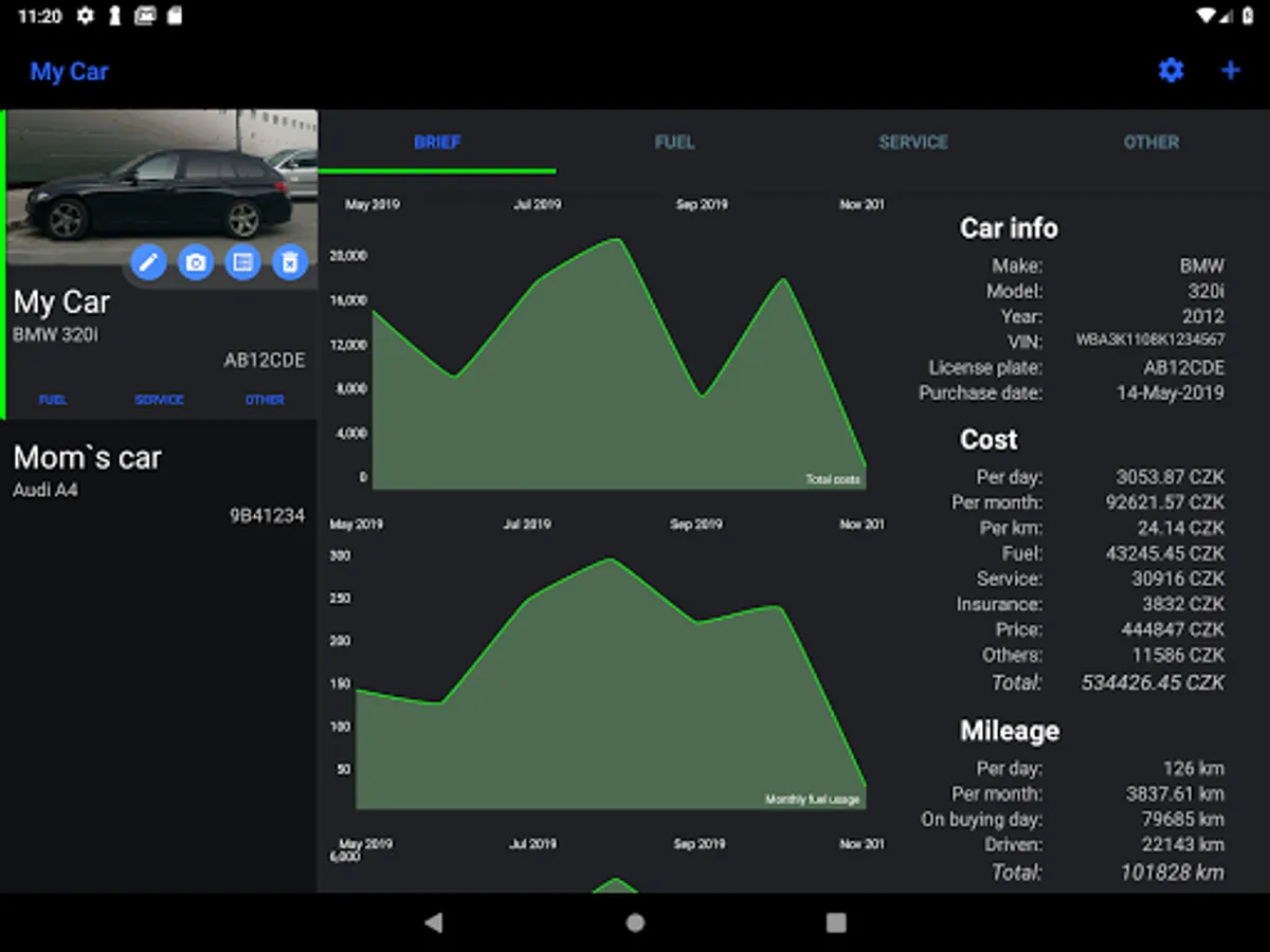 Car Log Free is an easy to use android application with which you'll be able to track your car expenses, service costs, fuel consumption, car´s mileage and so on. With Car Log Free ou'll be able to see in detail how much money you spend on service, on fuel; what are the running costs for your car per day, month, year or km. It can also sync data in Google Drive, so you can use the app on multiple devices. And it will also sync data with the paid version of the app.