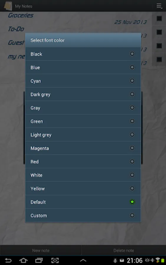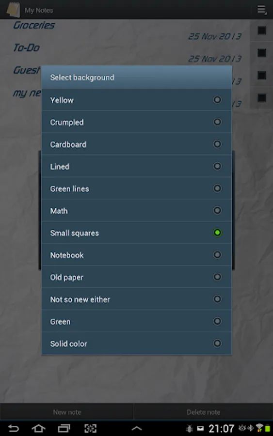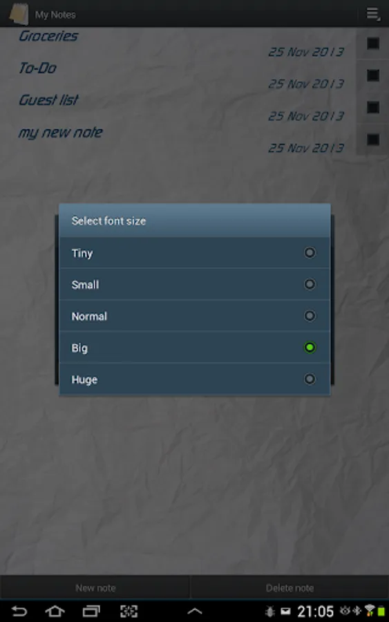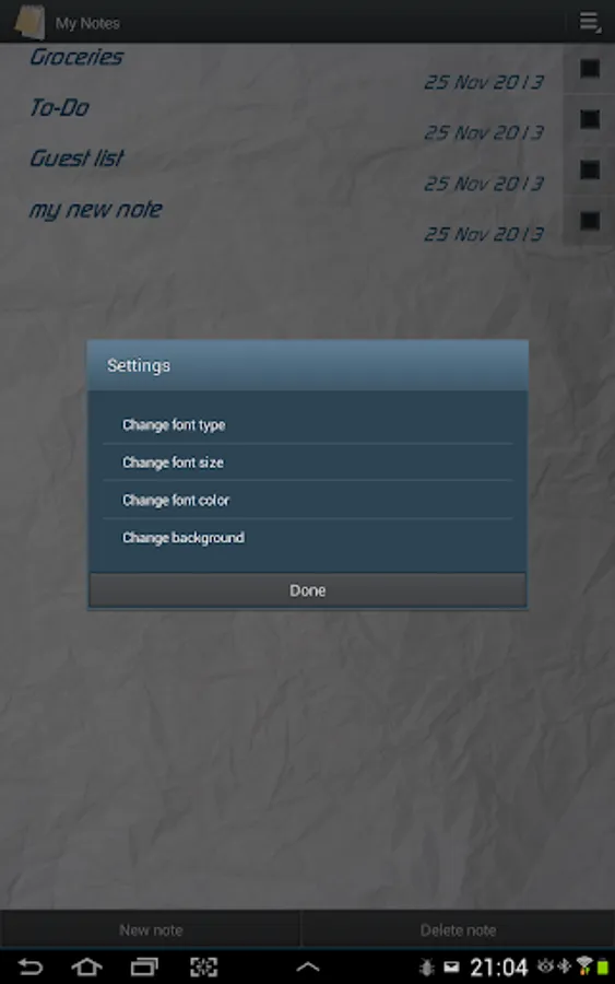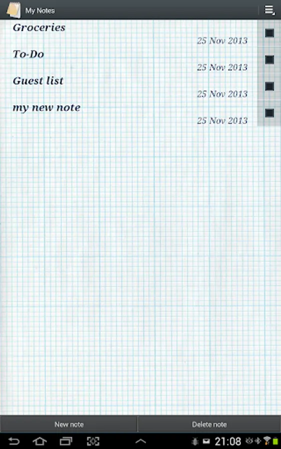 With My Notes you can easily create and save simple notes on your Android phone. All saved notes can be easily accessed and modified or deleted. All notes will be saved on the internal memory, so you won't lose any note if you remove your memory card.