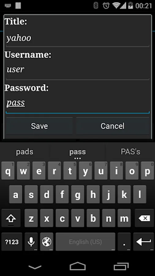 Pass Safe Free 2 is a password manager for Android. With Pass Safe Free 2 you can have all your passwords in one place, protected by a master password, so you'll never lose a password again. All passwords are stored locally on the phone, encrypted so only Pass Safe Free 2 can read them.