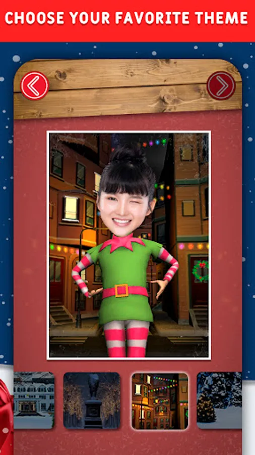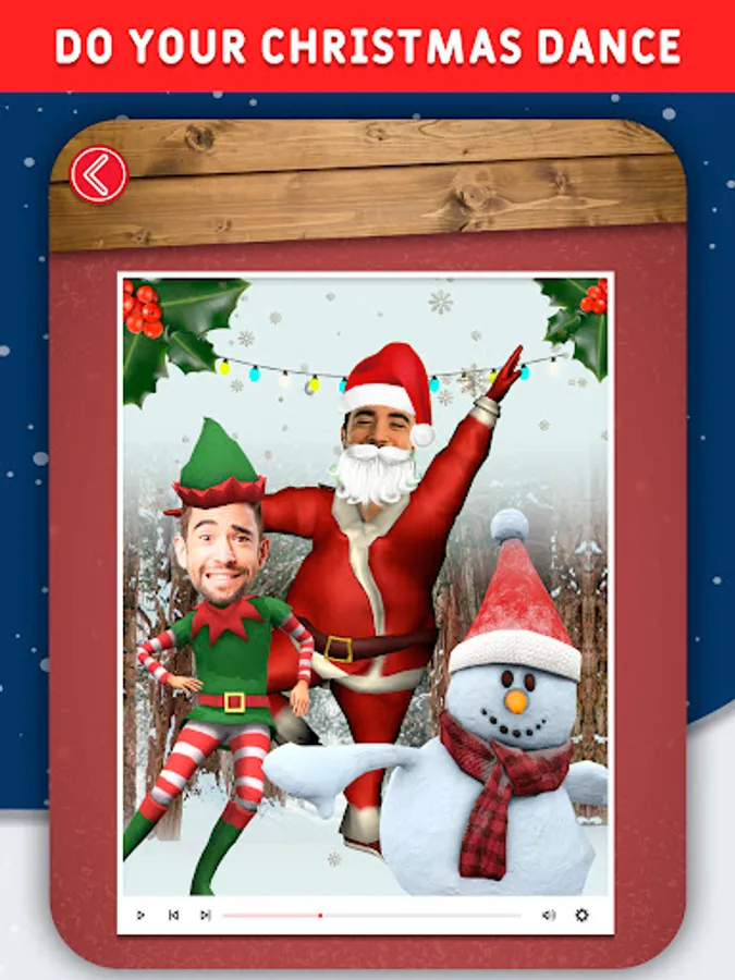 Enter the snowy village of Santa’s helpers and let the show begin! Join your friends and family in a funny elf dance. Enjoy creating a new unusual dance and will surely make your loved ones smile. You can dance yourself or you can add up to 3 dancers in your elf dance videos. Choose a photo of each one and make them all dance together. Select songs from our music library.
