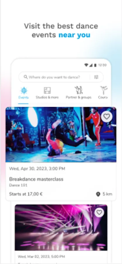 Try it out, download Danceflavors and become part of the dance world: stay up to date about events in your area and buy your tickets directly through the app, get all the important information about dance schools, studios and classes in your area, find dance partners that fit you exactly and connect with the dance community.