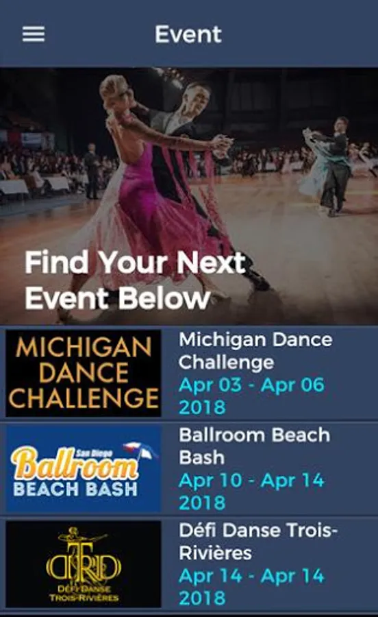 While traveling, at work, at home, or in the dance studio, use BallroomGO to review all the competition options at a glance on your mobile phone. No longer are you required to use one of those big desktop computers to get the information you need. Do it when and where you want to do it.