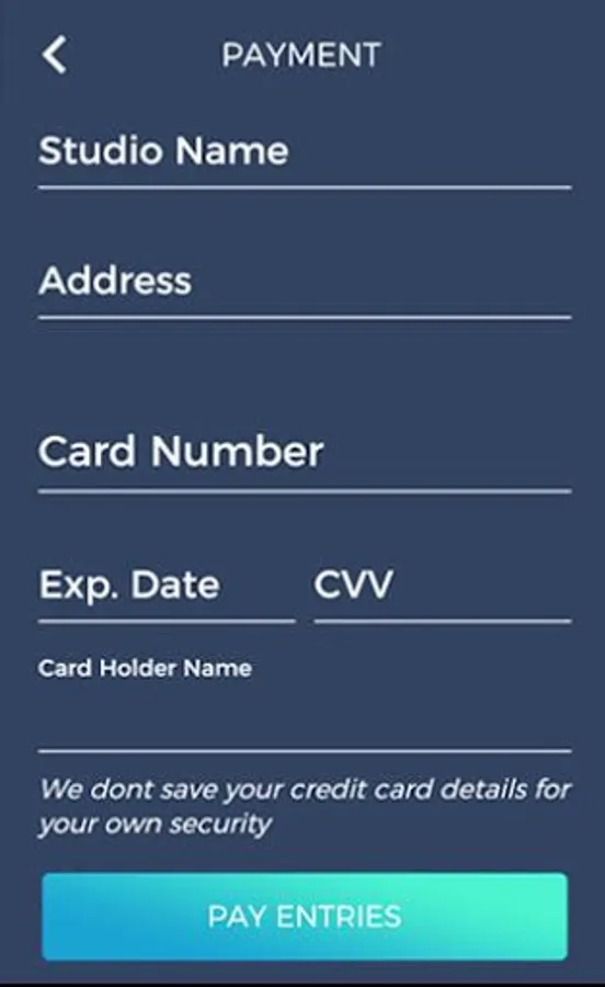 • LIVE ENTRY SUBMISSIONS: Create and submit your competition entries for yourself, your partner, your students, and your studio directly, and live from your mobile phone, in real time. Receive immediate confirmation that your entries were received.