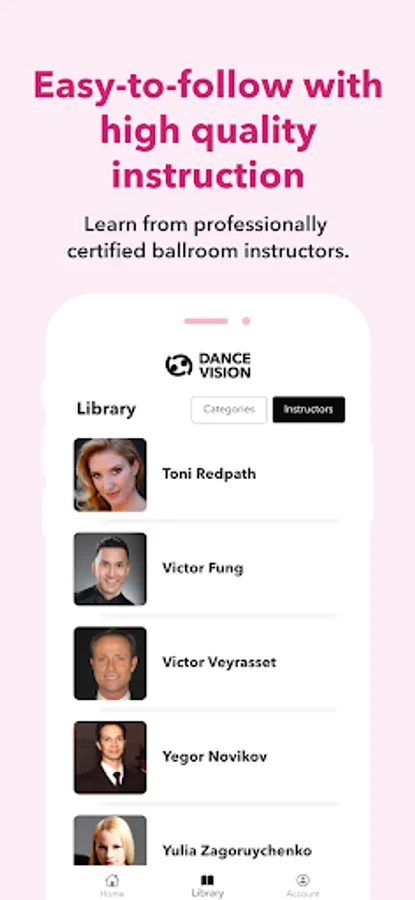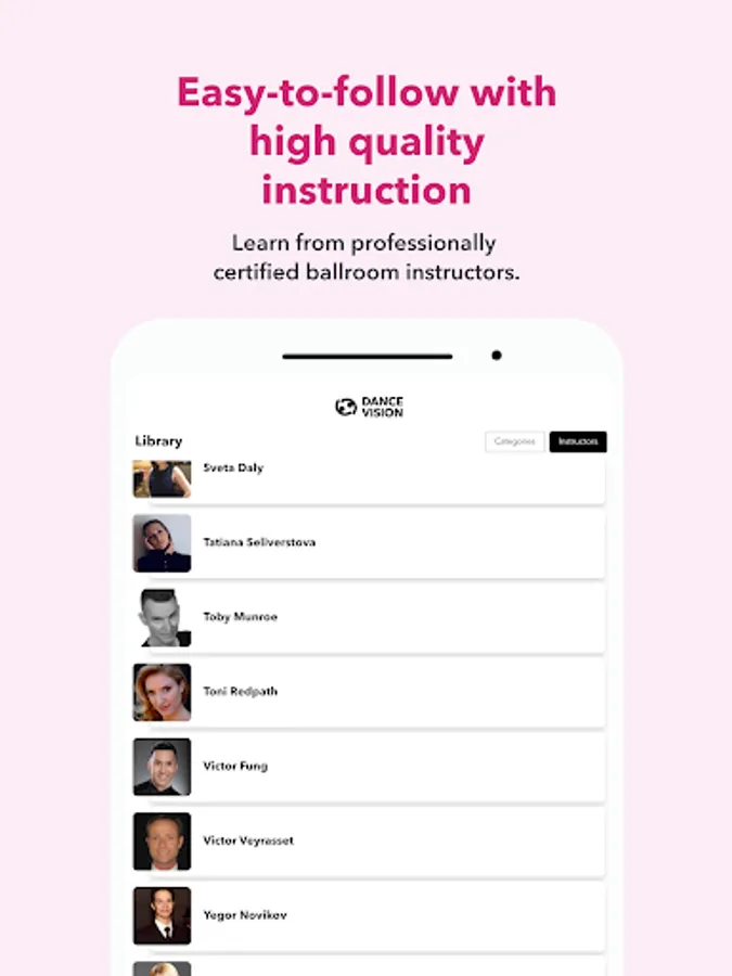Dance Vision is the #1 ballroom dance studio on your phone, tablet, or smart TV. Use it to learn to dance step-by-step, at a pace that works for you.