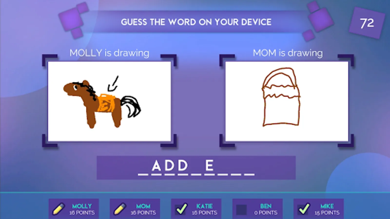 DuoDoodle is a fun party drawing game that is great for any group of family and friends. It's a game of drawing and guessing with a unique twist. If you like Pictionary or Draw-It, you'll be sure to have a blast.
