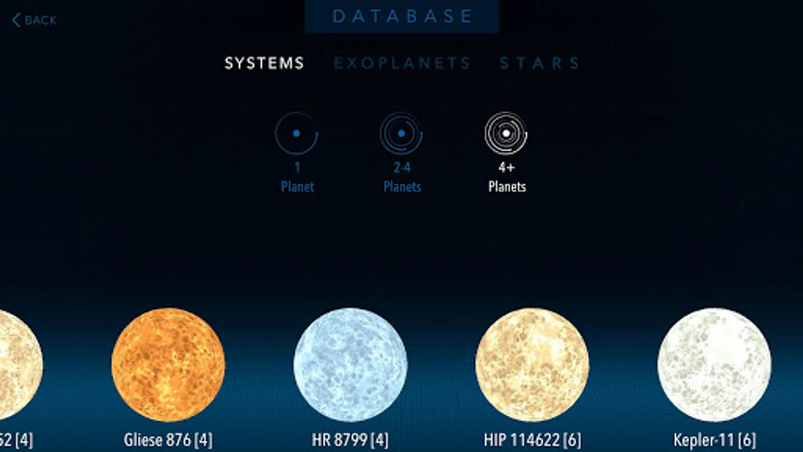 The free preview version includes the solar system and our six favorite planetary systems so you can explore 50+ stunning planets, moons, and dwarf planets. Some features like Telescope, the Database and top flight speeds require the premium upgrade.