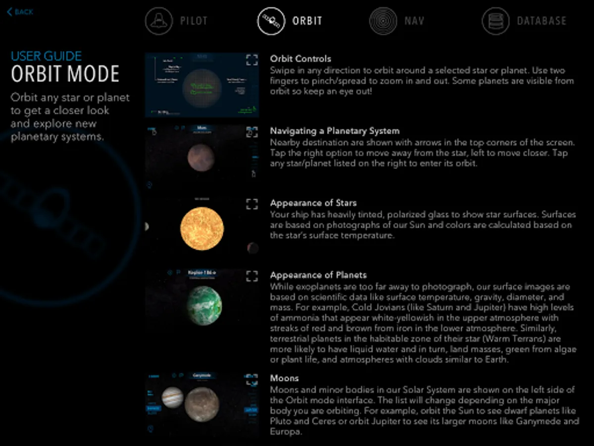 • Orbit Mode to easily navigate systems and rotate or zoom in to examine planets