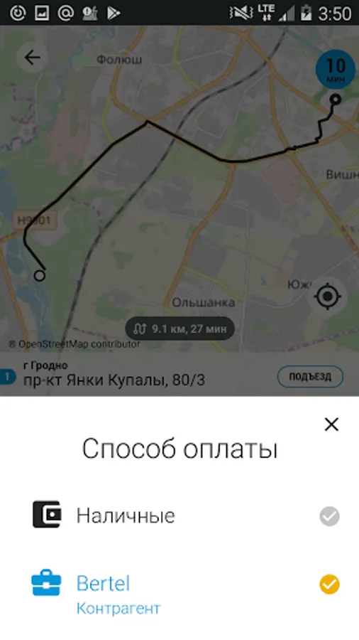 The final price will be displayed at the end of the route, taking into account the actual conditions of the trip (stops, arrivals, traffic jams, changing the final address).