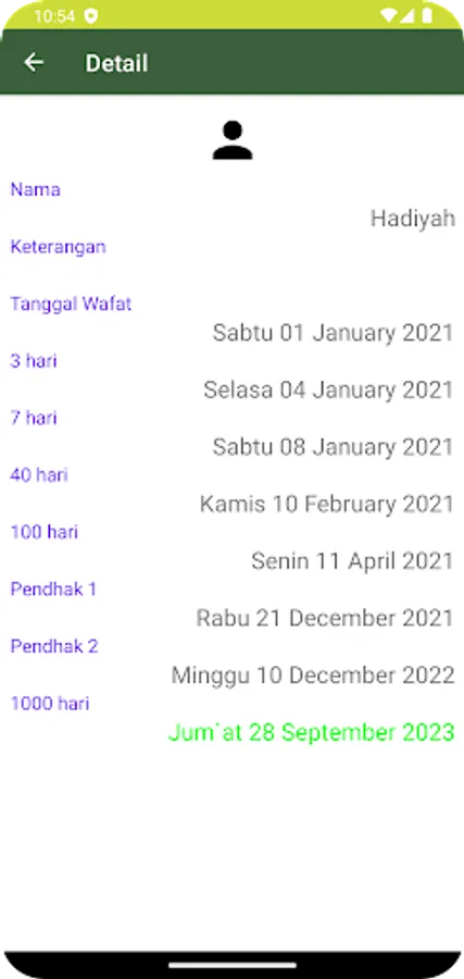 The first feature, calculating the date of the slametan of the deceased, is very helpful for Muslims in commemorating and remembering those who have passed away. Application users can easily find out the slametan date by entering complete data regarding the time of death of a person. This feature is very helpful to avoid mistakes in determining the date of the slametan, so that users can perform the slametan correctly and correctly.