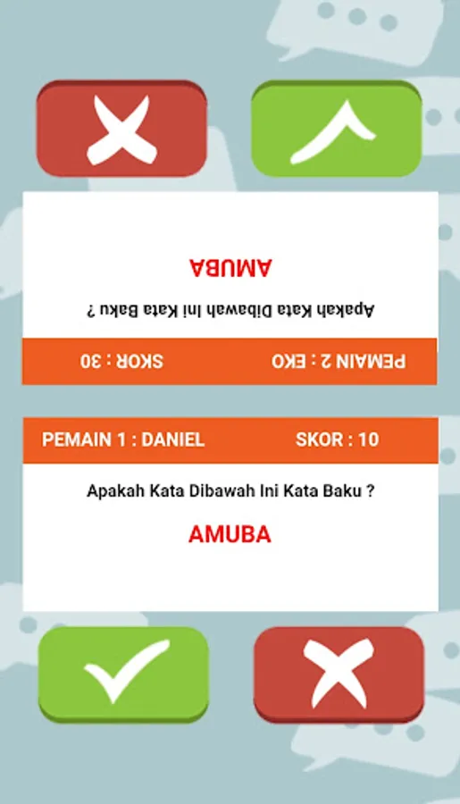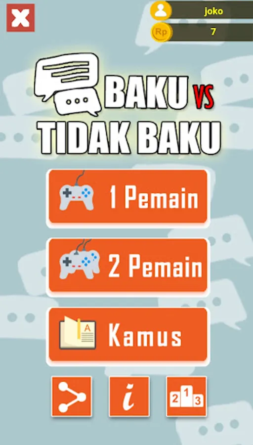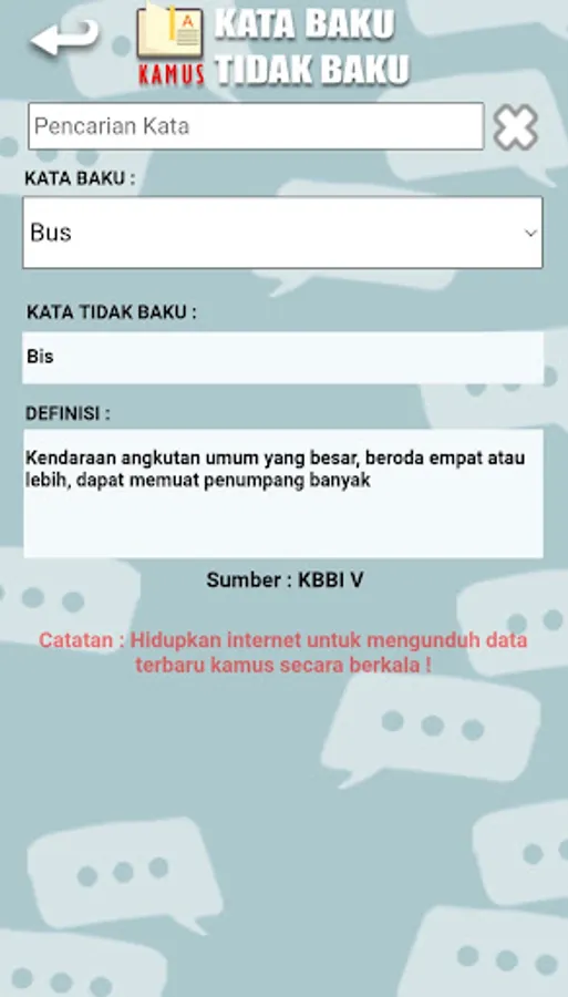 Baku VS Unbaku is a game of standard and non-standard vocabulary words in Indonesian. The raw vs non-standard game material comes from the Big Indonesian Language Dictionary (KBBI) Edition V.