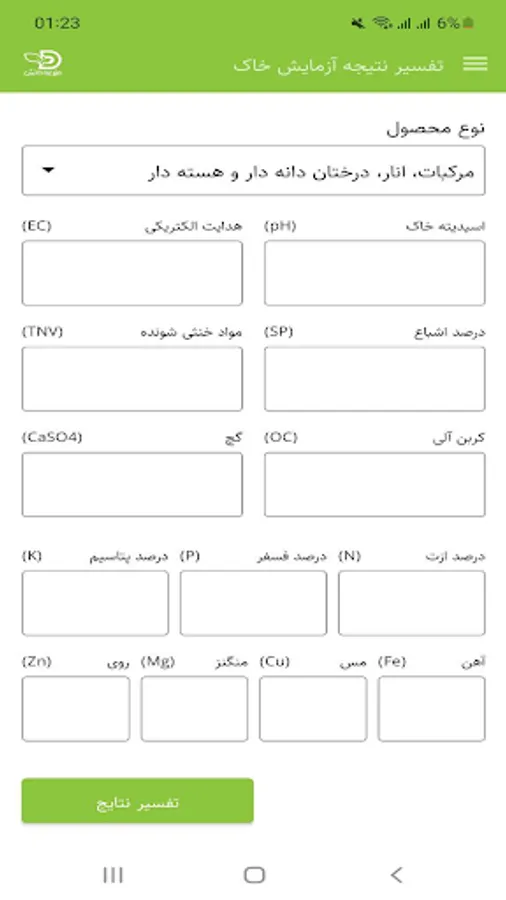 - ابزار رایگان تفسیر نتیجه خاک و تشخیص نوع بافت خاک