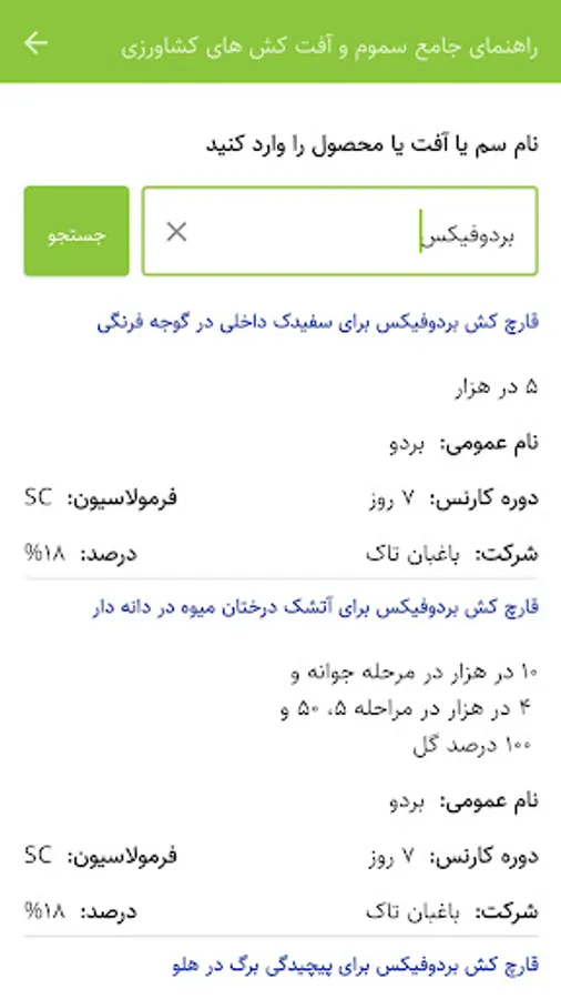 - راهنمای جامع سموم و آفت کش های کشاورزی + ابزار جستجو
