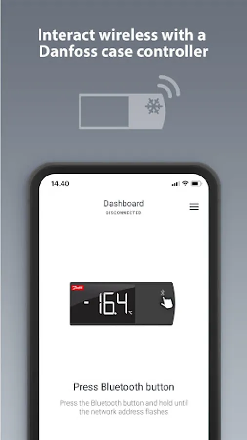 Make service easy with the free AK-CC55 Connect app. Via a Danfoss Bluetooth display you can connect to an AK-CC55 case controller and get a visual overview of the display functions. The app ensures smooth interaction with a Danfoss AK-CC55 case controller in a user-friendly design.