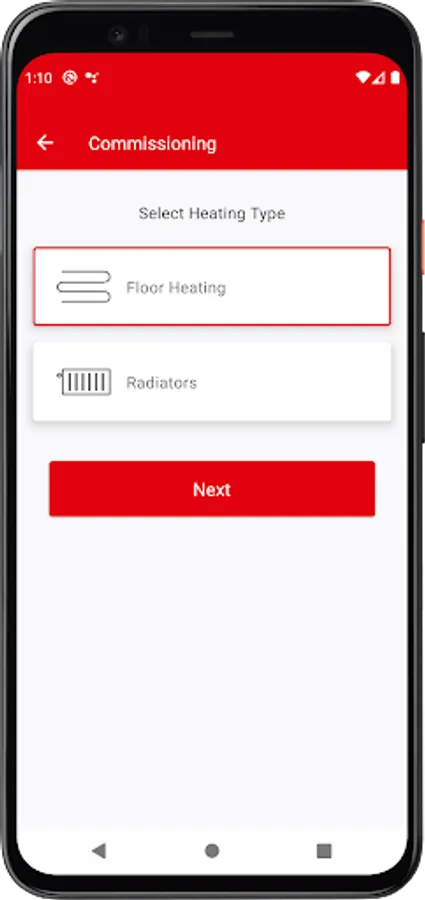 With a few selections, the system recommends the basic settings. All you have to do is select control principle and radiator/floor heating.