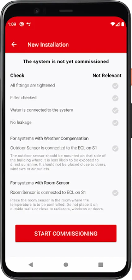 ECL Go provides step-by-step instructions for commissioning as recommended by the supplier, including complete documentation.