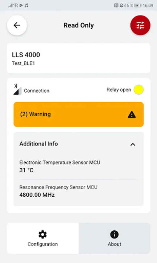 The LLS 4000 app connects remotely to any LLS 4000/4000U liquid level switch via Bluetooth. Once they are paired up, you can select between essential functions.