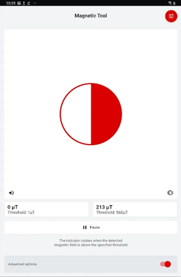 Magnetic Tool has two modes: Simple and Advanced. With Simple mode, all you need to do is open the app and start testing—it's that simple. Advanced mode allows you to adjust the threshold tolerances of the magnetometer, which is most often used to reduce or eliminate interference from other nearby solenoid valves.