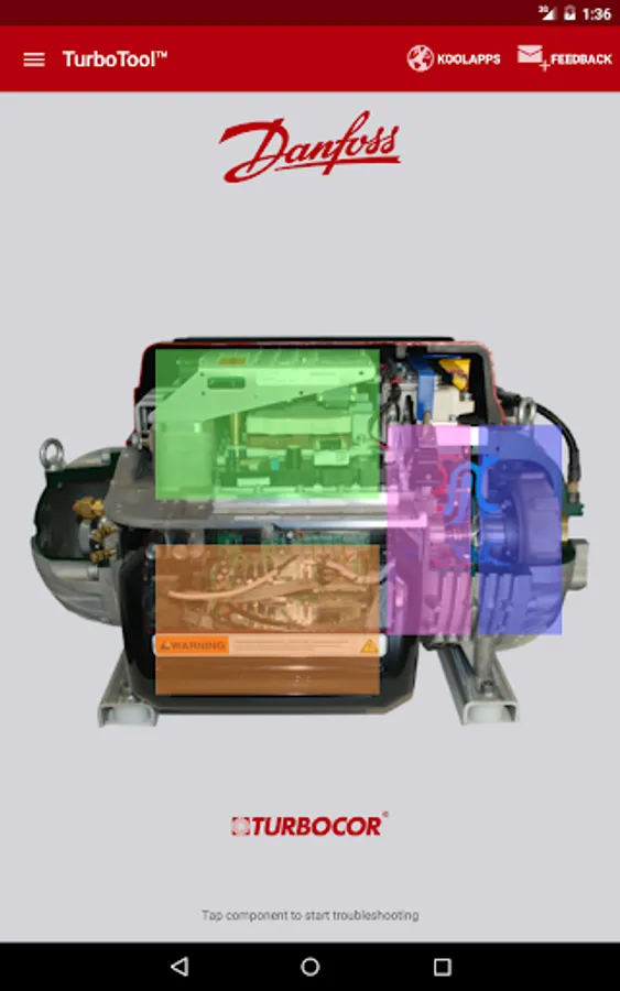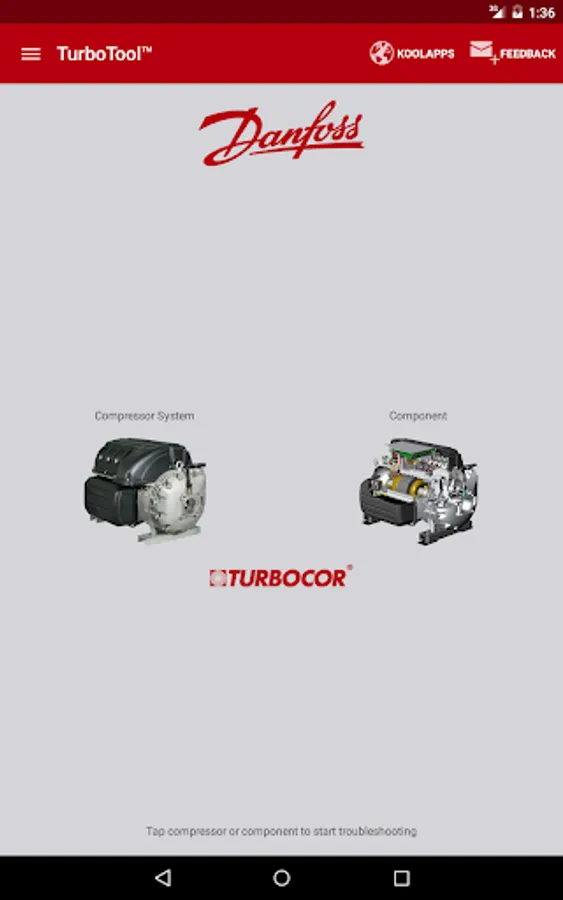 TurboTool® makes it easy for service technicians to troubleshoot, service, and maintain Danfoss Turbocor® compressors in the field. The app helps you by identifying symptoms, walking you through the possible causes, displaying remedies, and suggesting possible actions.