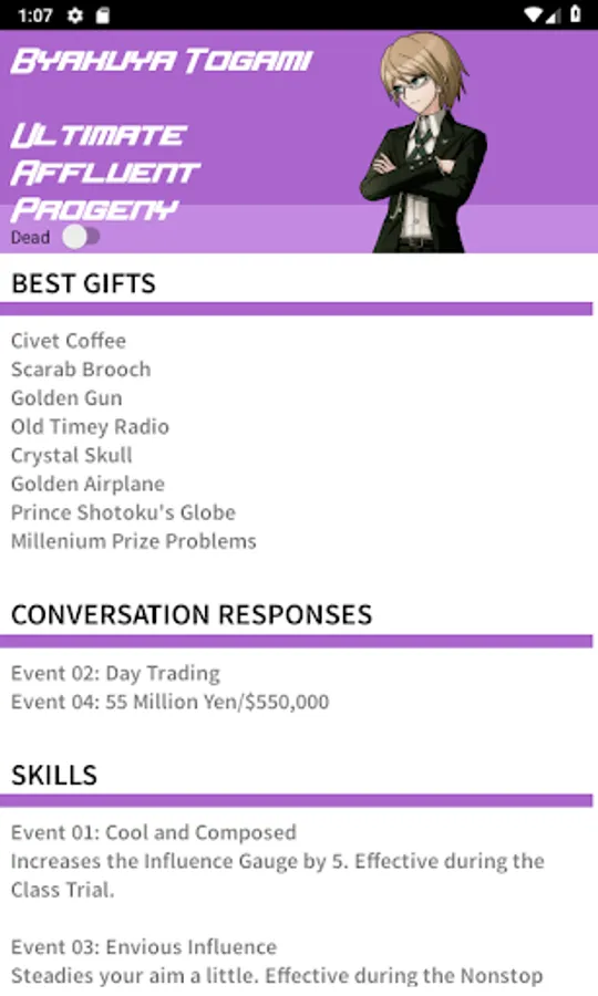 Complete with optimal conversation options as well as character skills and tips for making friends, this should be the only Danganronpa app you'll ever need.