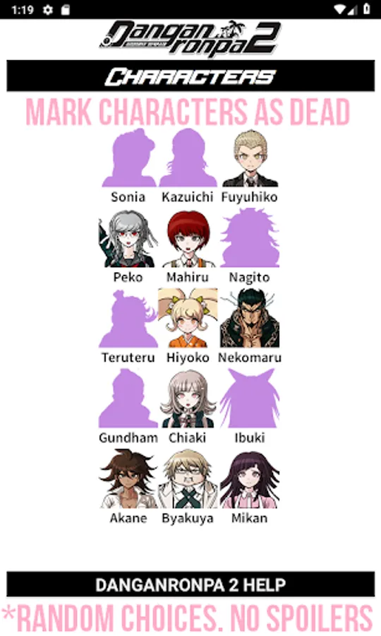 This small app provides all of the (spoiler-free) info you might need while playing through the Danganronpa series.