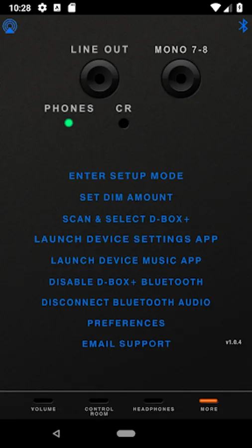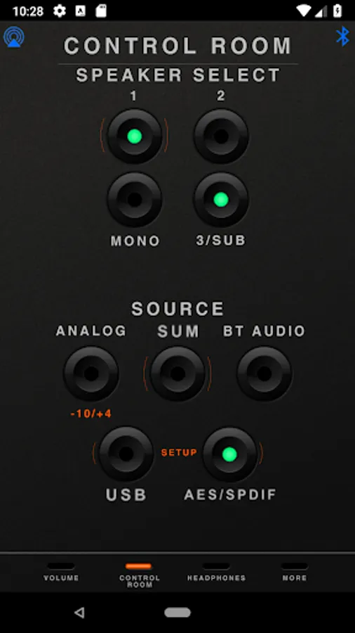 Bluetooth remote control for Dangerous Music D-BOX+. Seamlessly operates the following functions: