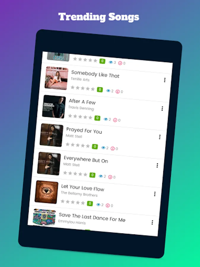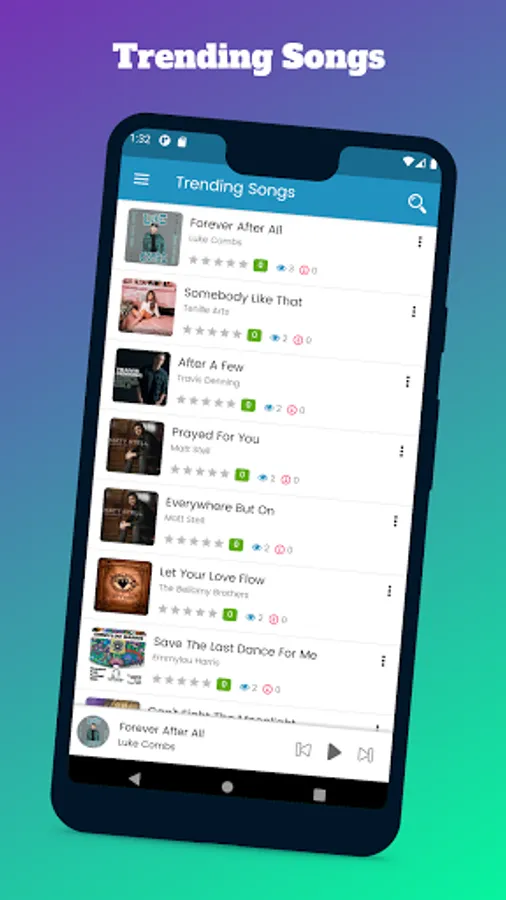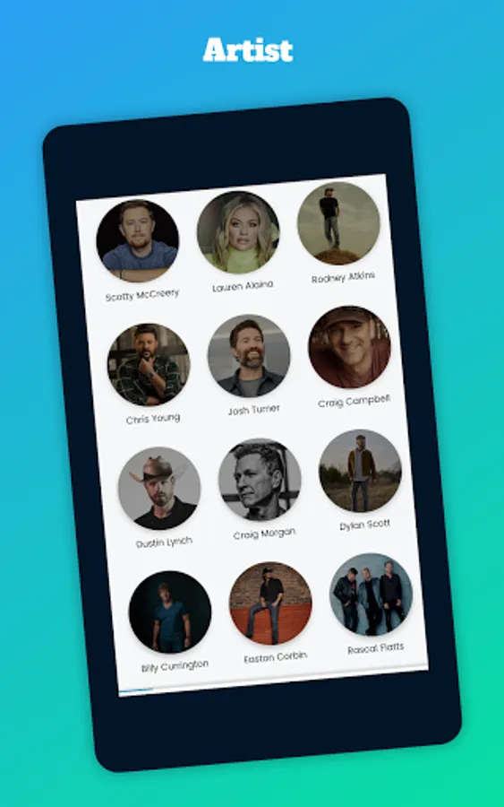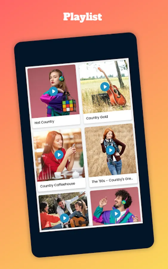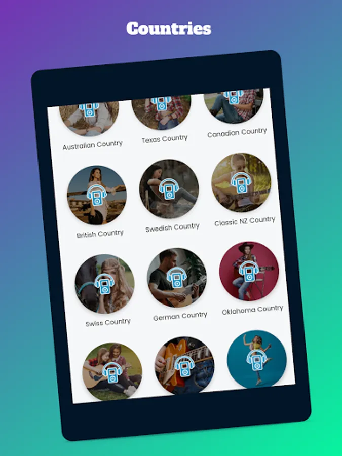 Use Country Music Songs app on your smartphone, tablet or other device with Android system and start enjoying a wide variety of artists completely free and without commercial breaks. Download our app and immerse yourself in the music!