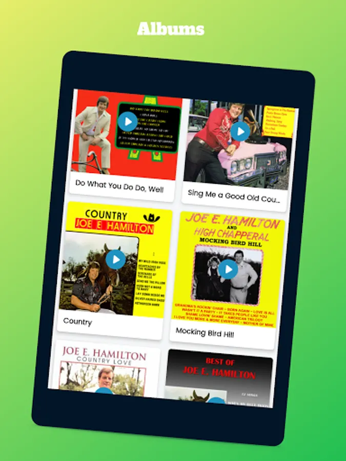 With this music platform, you can search country folk music in many categories. The many country music songs you'll find will always offer plenty of choice and you'll not get tired listening to the same ones all the time; in this application you will find hundreds of artists and thousands of songs. You can find all time best songs based on artist, song name, album name, date of release, genre, sub genre and many other filters.