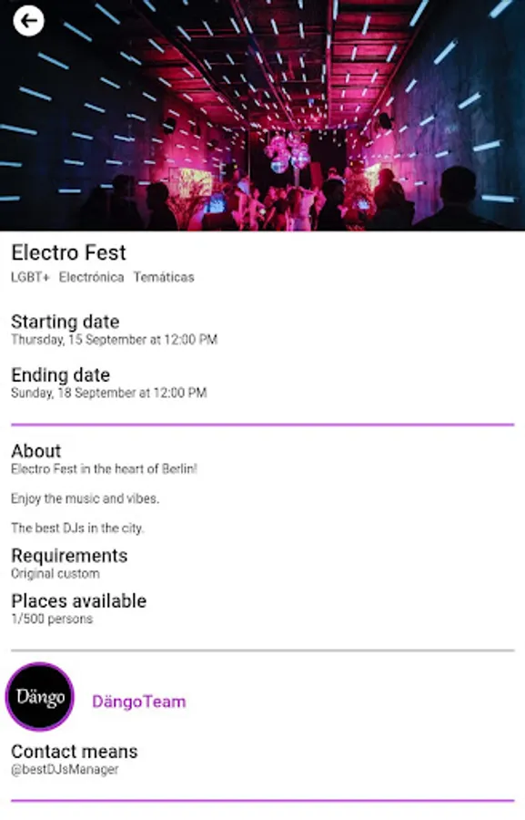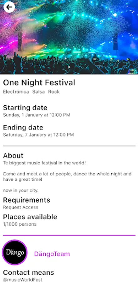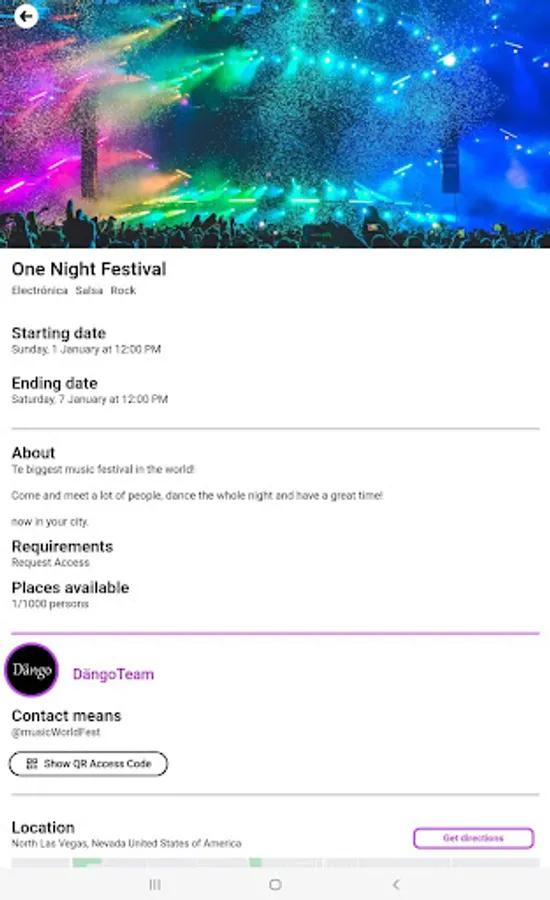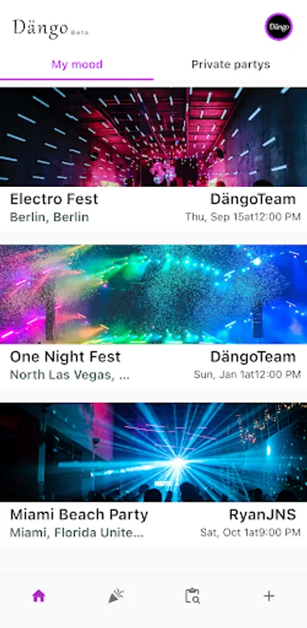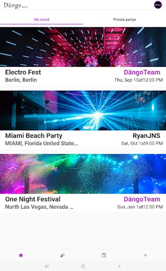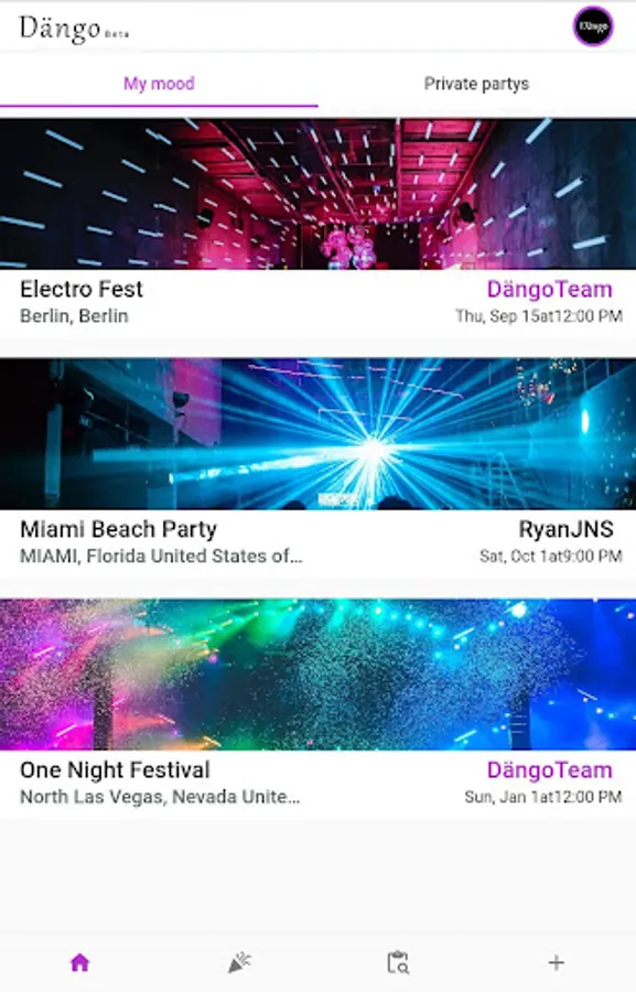 Mobile application to be able to find, attend or create social events that have the characteristics you are looking for to spend a great night in your city, from clubs, concerts and festivals, to restaurants, bars and parties, there is always something to do!