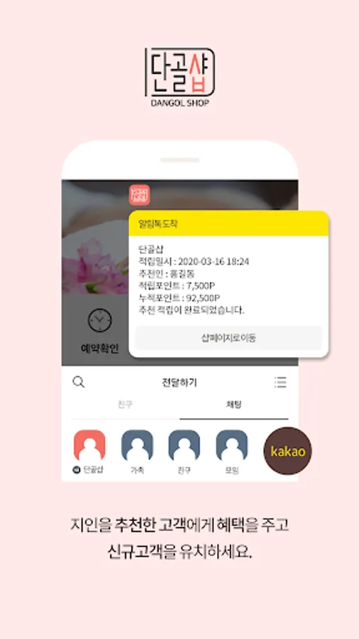 - 지인을 추천한 고객에게 포인트 혜택을 주고, 확실한 신규 고객을 유치하세요.